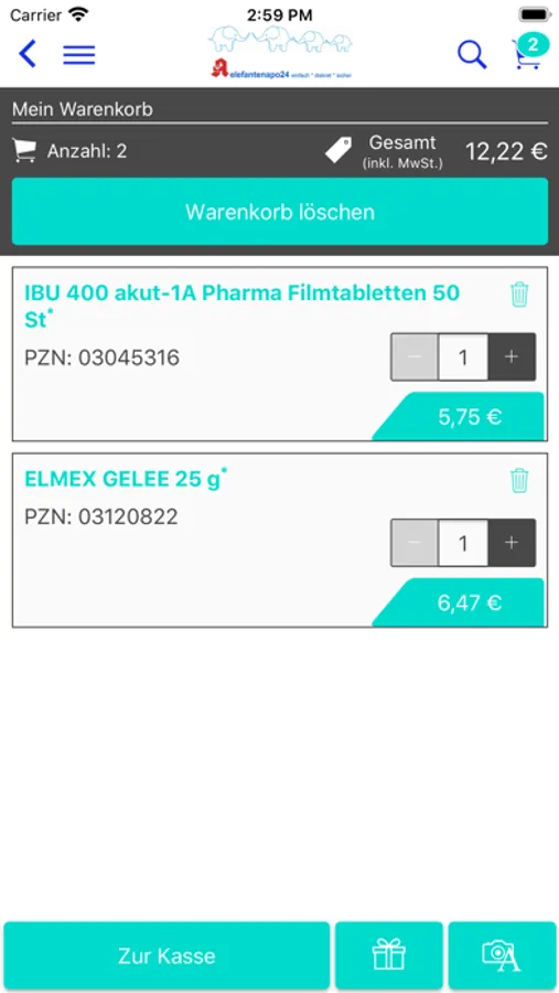 Bestellen Sie Ihre Medikamente einfach, diskret und sicher. Informieren Sie sich über Preise und Verfügbarkeit und sehen Sie auf Wunsch die Beipackzettel ein. Profitieren Sie von exklusiven Angebotspreisen bei freiverkäuflichen Arzneimitteln. Sie können Ihre bestellten Medikamente selber abholen, in den angrenzenden Stadtteilen von Köln Mauenheim (PLZ 50739) und in Frechen (PLZ 50226) per Botendienst liefern lassen oder deutschlandweit per DHL als diskretes Paket erhalten. Rezeptpflichtige Medikamente können Sie mit der App sicher und komfortabel vorbestellen. Einfach das Rezept mit der App fotografieren und die Übertragung erfolgt verschlüsselt direkt zu uns in die Apotheke.