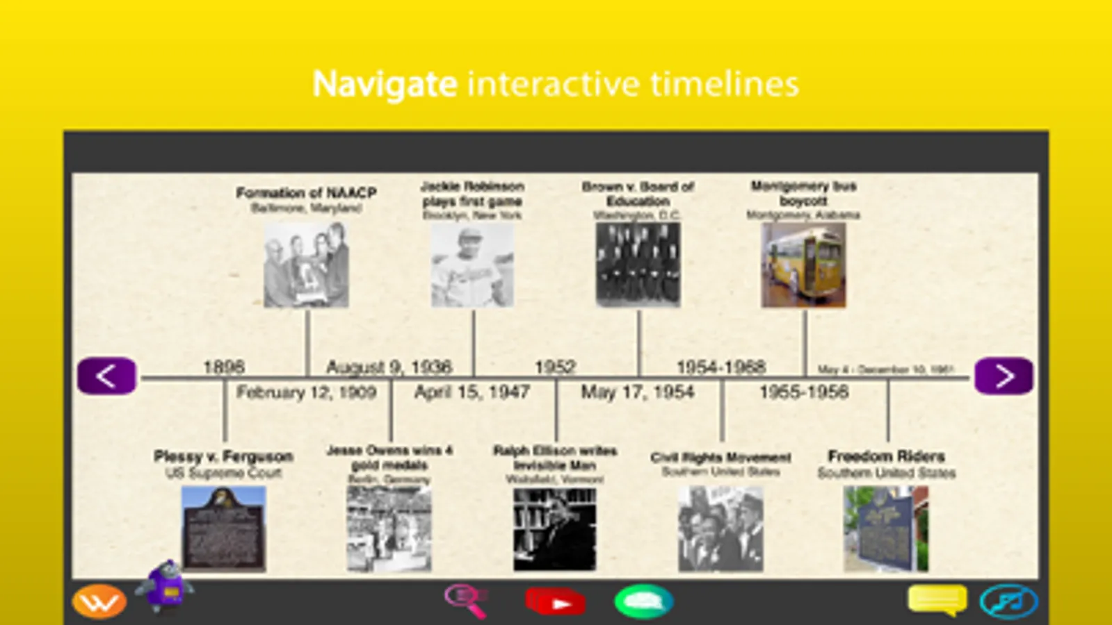 Come explore history like never before, with interactive timelines, detailed content, engaging videos, animated objects, talking robots, and trivia games.