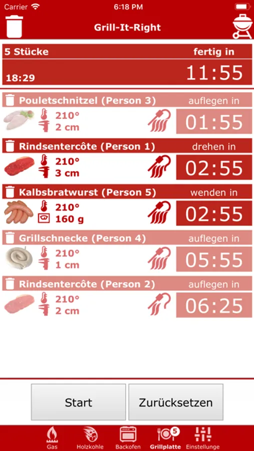 Es lassen sich beliebige Grillstücke zu einer Grillplatte zusammenstellen. Sie werden kontinuierlich in der Reihenfolge der Aktionen zum Ziel geführt.