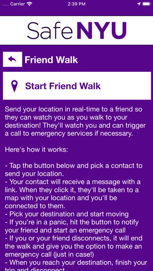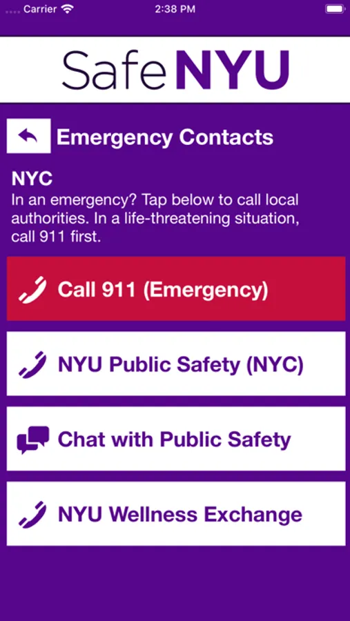 - Chat with Security: Communicate live with safety staff at NYU via chat.
