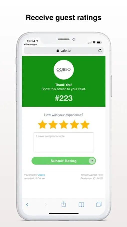 Track employees time cards, manage tip payouts and follow every step of a vehicles history including who touched it and when. Key audits are a breeze with real-time key counts, overnight reports and rate tracking. Your valet manager will love having reviews collected on every visit, letting them know how to fine tune your operation.
