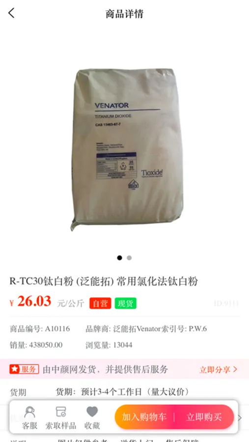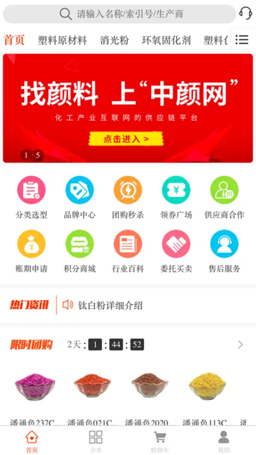 中颜网电子商务有限公司是一家塑胶颜料、色母、助剂一站式化工颜料行业电商服务平台,公司平台经营产品有科莱恩 巴斯夫 日本DIC 台湾大恭 德国拜耳 日本住友 日本大日精化 日本三菱 美国卡博特 美国亨斯迈 美国帝高荧光颜料 英国思瓦达 华乐 常州北美,杭州百合 双乐 亚邦 攀钢 龙蟒 日本花王 等产品齐全,价格优惠,为你采购省时,省力,省心。