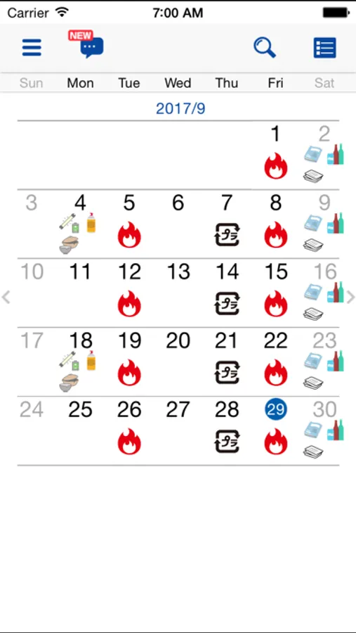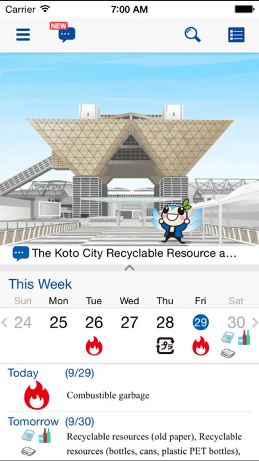 You can check the garbage collection schedule on one screen in three patterns—today and tomorrow, weekly, and monthly.