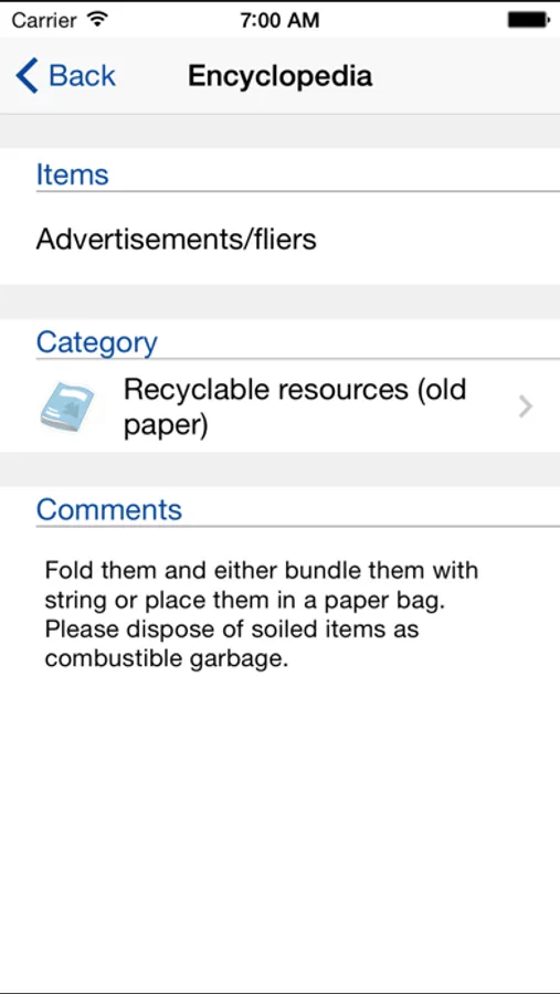 These guidelines show users how to dispose of different items. The app uses a search system with high retrieval performance to ensure that users can easily find what they are looking for.