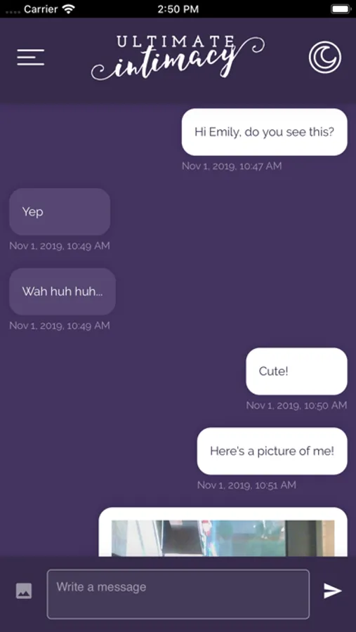 * Safe and secure (encrypted) in app private chat messaging where you and your spouse can communicate intimately together and send pictures and messages.