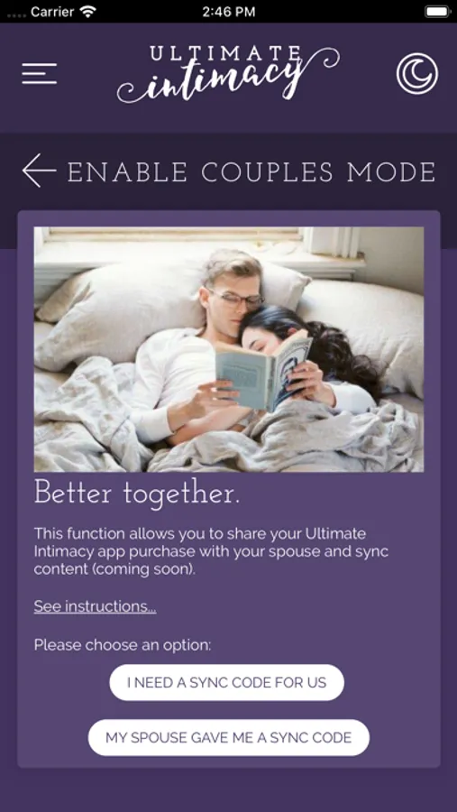 The Ultimate Intimacy App is the ULTIMATE marriage app for married couples who: