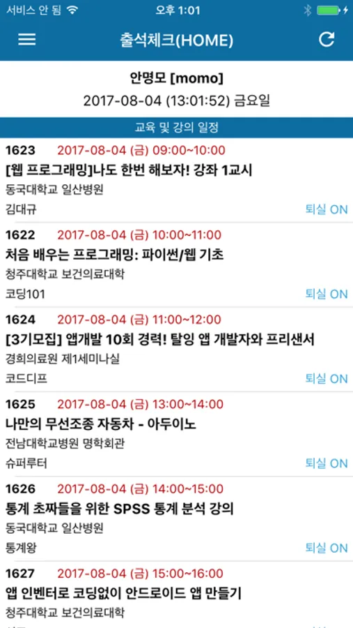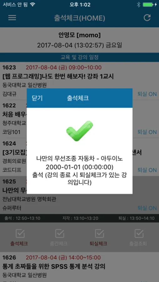 강의실에 설치되어진 Bluetooth Low-Energy 디바이스를 이용하여 강의실 위치를 인증 후 출석을 체크합니다.