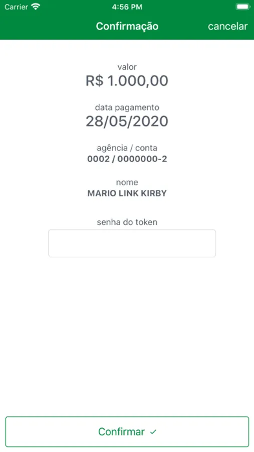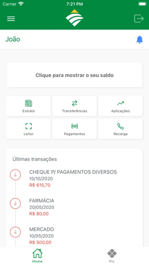 Para acessar o aplicativo é necessário usar a senha de 8 dígitos, a mesma utilizada no internet banking para navegadores.