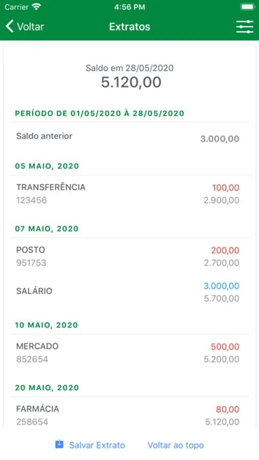 - Extrato mês atual: Consultar a partir dos dois últimos dias anterior;