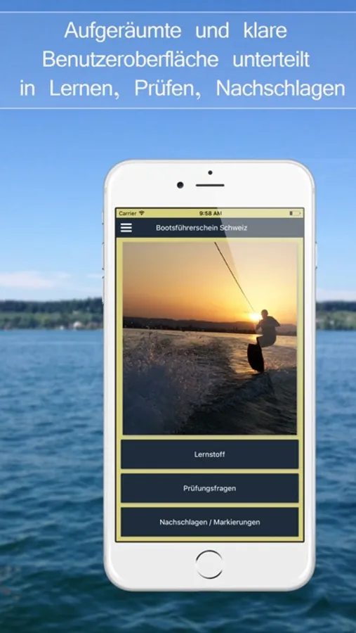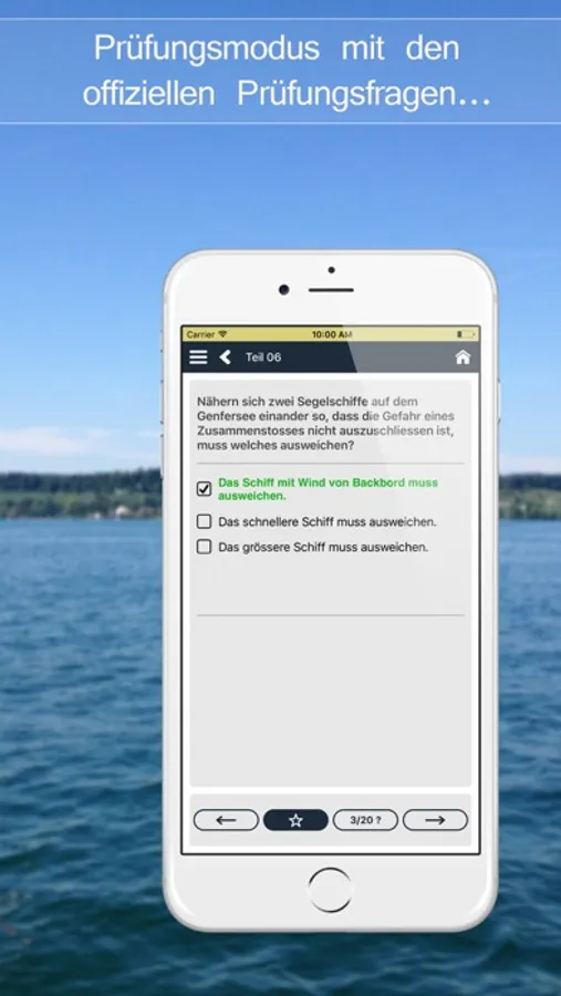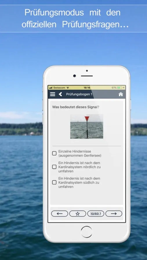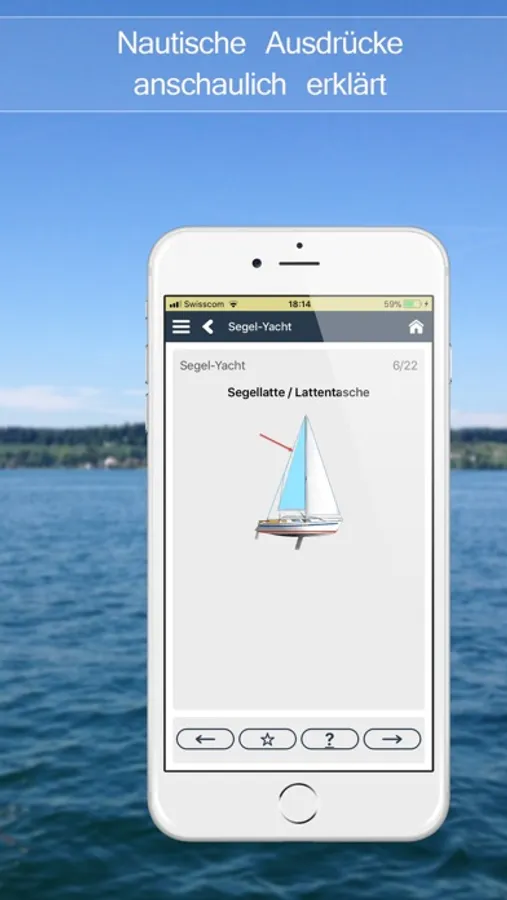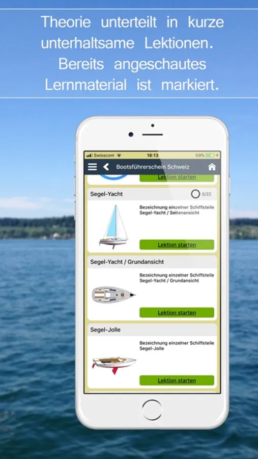Lernapp für die Vorbereitung auf die theoretische Prüfung für Motor- und Segelschiff Kategorie A und D mit den offiziellen und aktuellsten Prüfungsfragen, sowie dem vollständigen Nachschlagewerk "Gute Fahrt auf schweizerischen Gewässern".