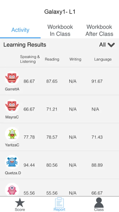 - Track student progress for each activity during lesson days