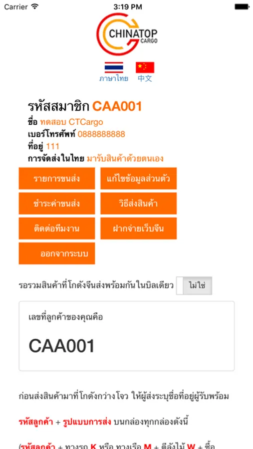 แอพลิเคชั่นใหม่ล่าสุด สำหรับลูกค้า ChinaTopCargo