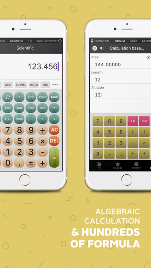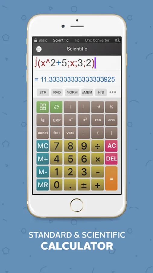 ► Scientific calculator: sin, cos, tan, deg/rad/grad, Pi, sin-1, cos-1, tan-1, sinh, cosh, tanh, log, ln, sinh-1, cosh-1, tanh-1, Dec→Deg, Deg→Dec, XY→R, Random, nPr, nCr, Differential function, Evaluation function,...