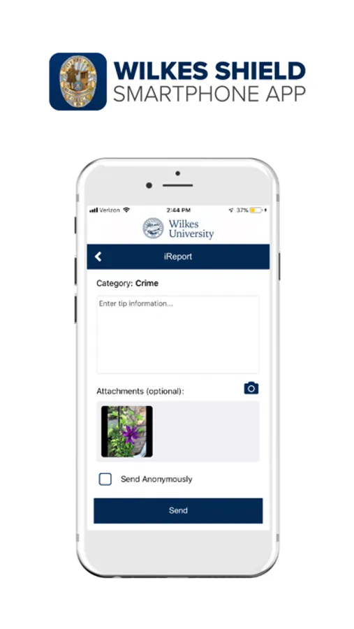 -Send text messages, as well as photos and videos of crime tips and suspicious behavior directly to college safety forces.