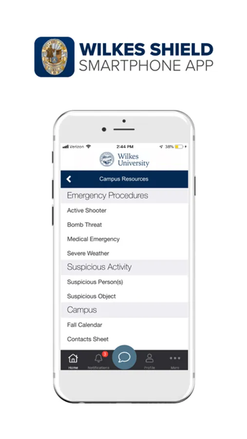 If you're in a dangerous situation, use the Wilkes Shield application to quickly and easily contact university safety forces.