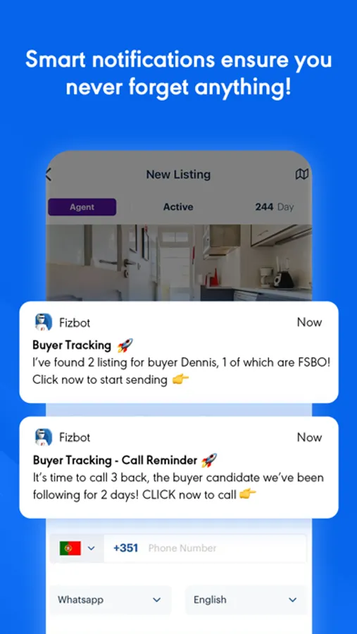 Tech solution of thousands of real estate agents: Fizbot. Exclusively developed for real estate agents, Fizbot makes your life easy, gives pace to your business, and increases your sales. Join the global application of winning agents!