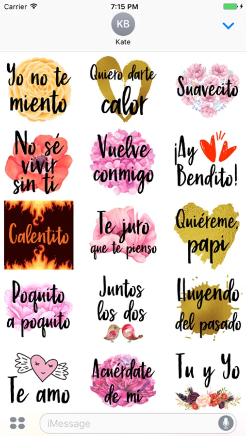 A big mix of love stickers constantly updated with new phrases and emojis.