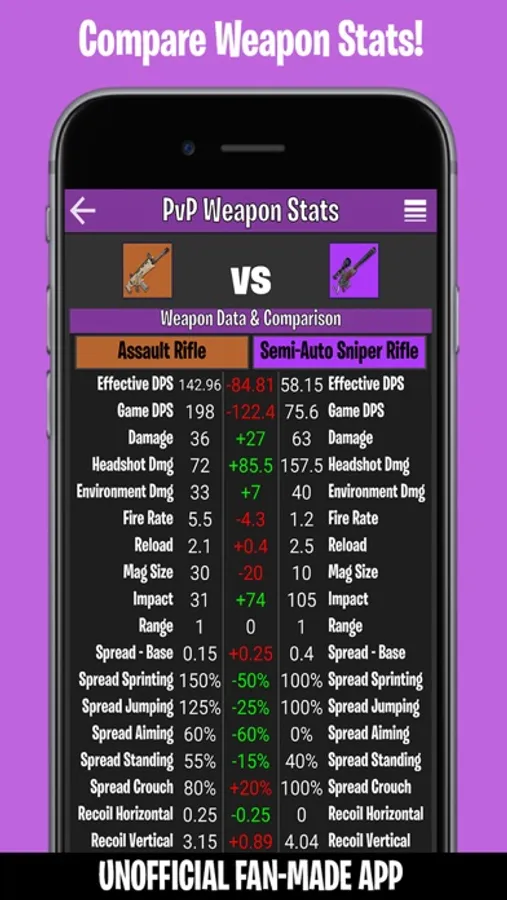 - Weapon Stats with comparison tool for all Battle Royale Weapons.