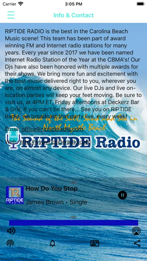 We are Carolina Beach Music. We place a special focus on new songs and artists that fit the Carolina Beach Music genre. Of course, we also play the standards and a little variety on some of our live and scheduled shows. Our station and DJs are consistent winners in the respective Carolina Beach Music Awards categories.