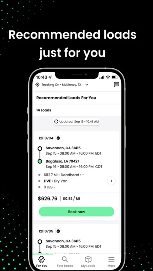 Join the thousands of savvy drivers, owner-operators, and small fleet carriers who use the app to book loads on the go.