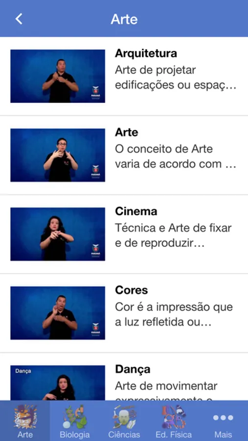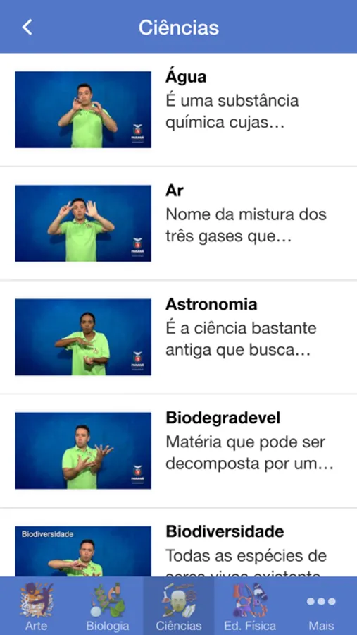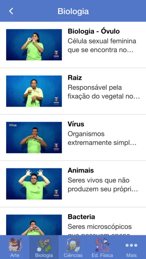 Hoje com cerca de 300 vídeos, o app disponibiliza em Libras (Língua Brasileiras de Sinais)