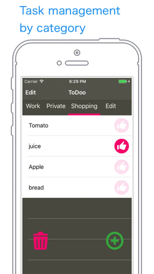 ToDoo is a category list type ToDo application that can manage tasks for each usage scene such as work and shopping.