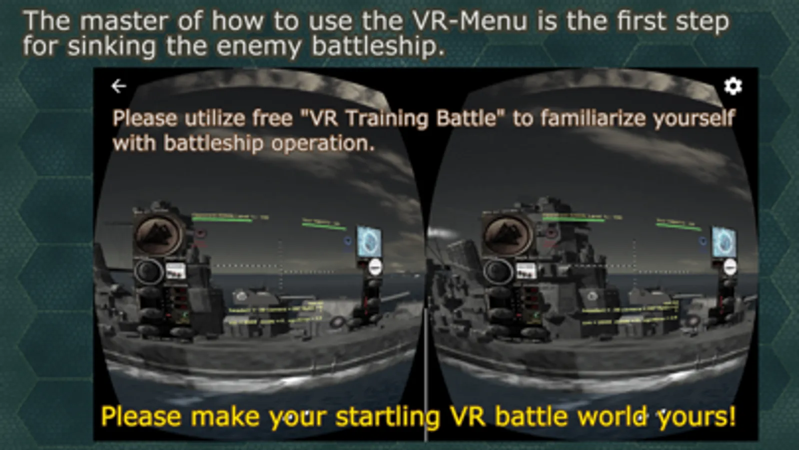The function of VR is expected to differ depending on the situation of your device, VR adapter, etc. Therefore, we recommend you to try battleship operation and main gun operation in "VR test battle mode" which you can enjoy for free first. In other words, it is to be familiar with a series of tasks such as quickly finding an enemy battleship, issuing a VR menu, matching main gun sights and shooting.