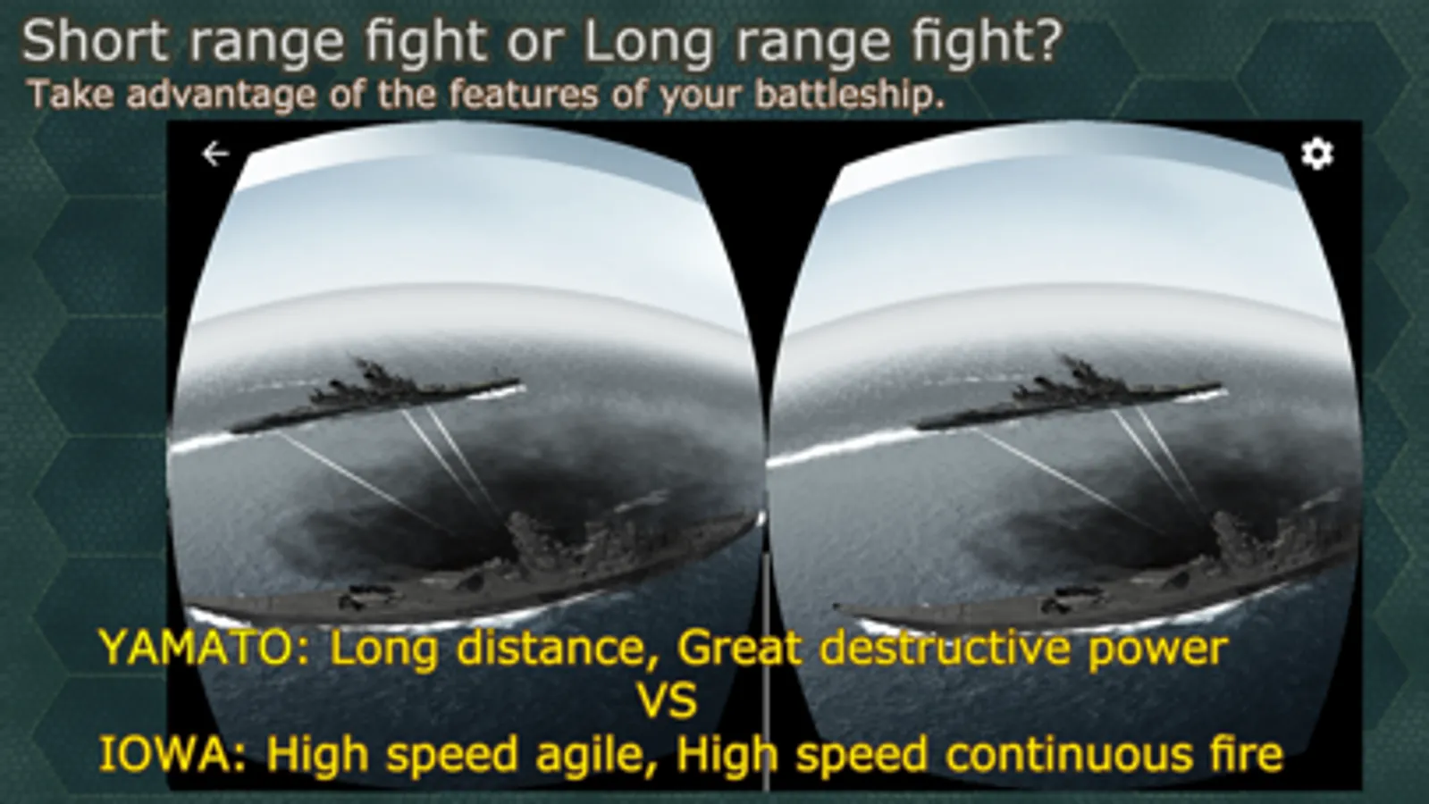 This is a VR Real-Time Simulation Game of the one-on-one fight of the Ultimate Huge Battleships; IOWA-class and Yamato-class.