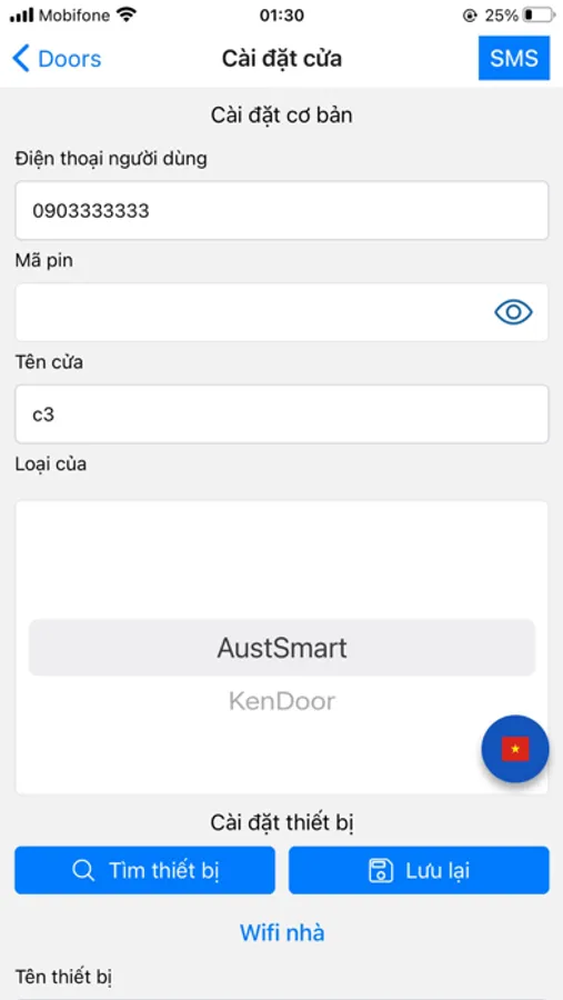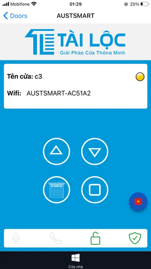 Ứng dụng này hỗ trợ điều khiển cửa tự động thông qua wifi, tin nhắn hoặc cuộc gọi.