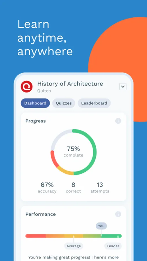 With Quitch, you can track your progress, participate in leaderboards and earn points and badges as you complete each class, making learning a rewarding and satisfying experience.