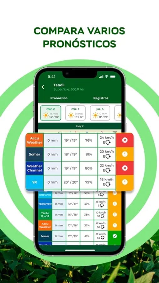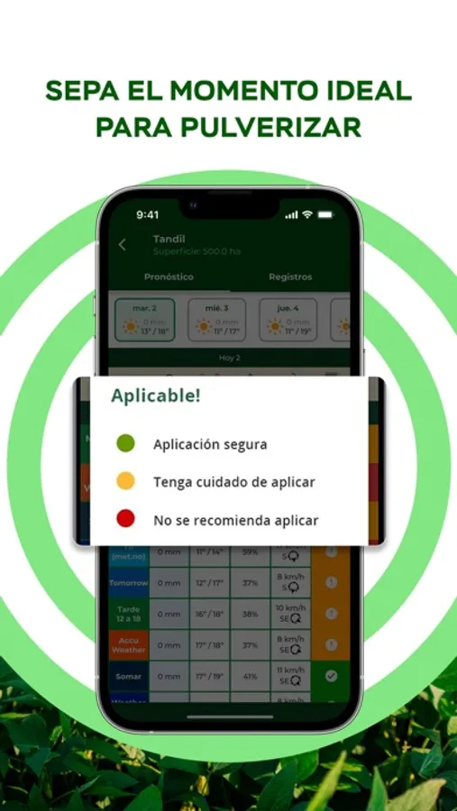 * Pests Map: Allows you to visualize alerts of insects, weeds and diseases that are affecting crops in different areas.These alerts are provided by the same users.