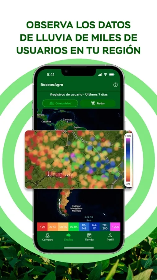 * Rainfall Map: Allows you to visualize the cumulative rainfall of the last 7 days in the area of your farms. The data comes from the user's rainfall raingauge records.