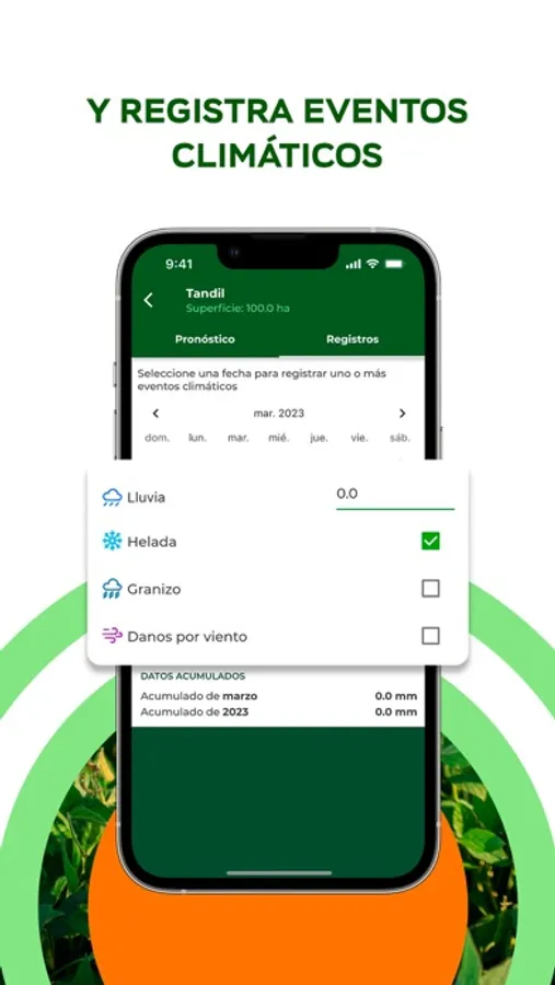 * In-field Records: Keep records of the last precipitations, hail, frost or other weather-related events happened in the field.