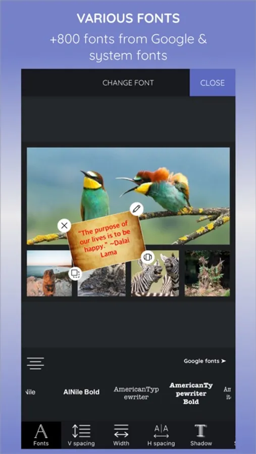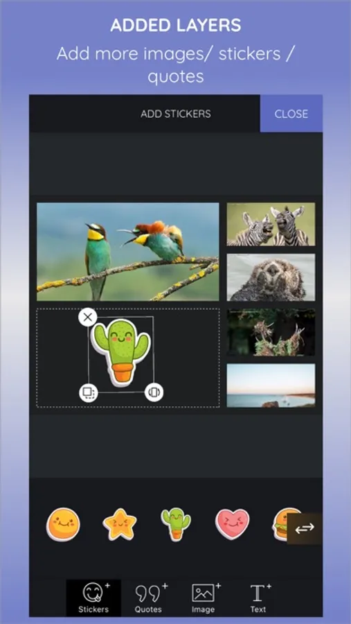 With Layout Pic, you can use a various sticker, nice fonts of google to decorate your photo.