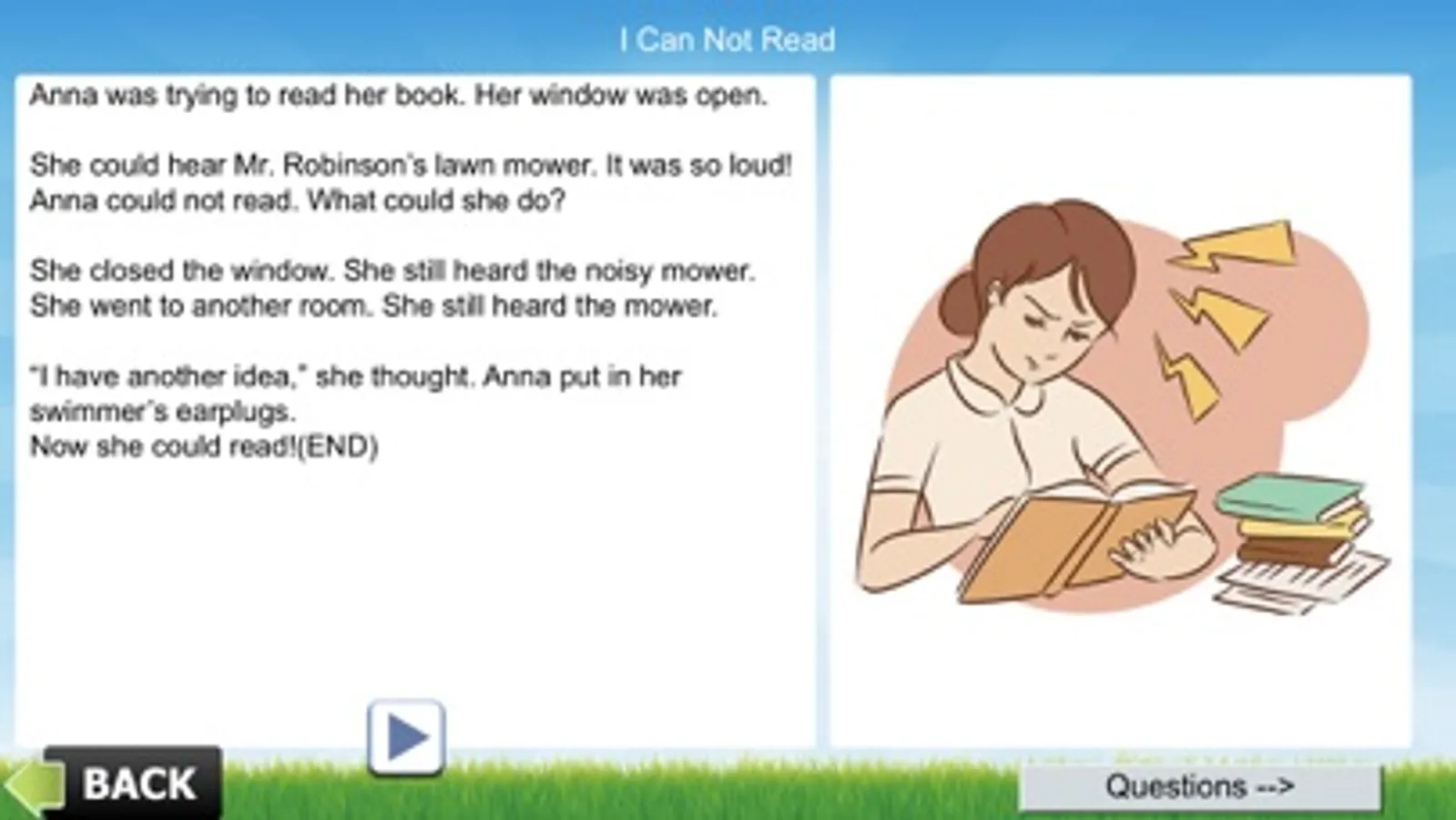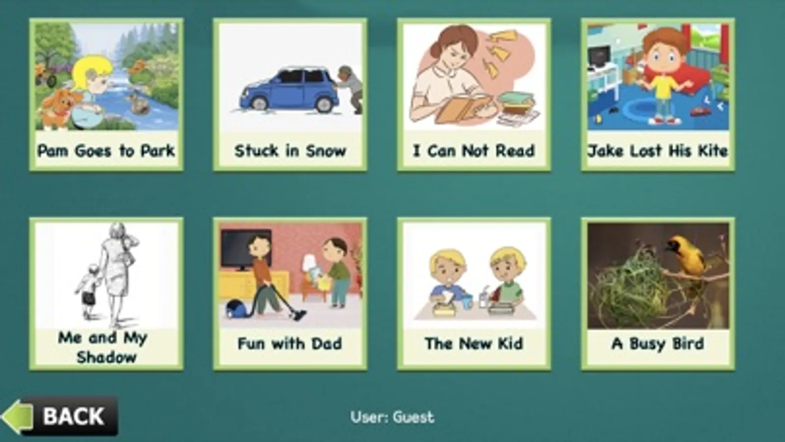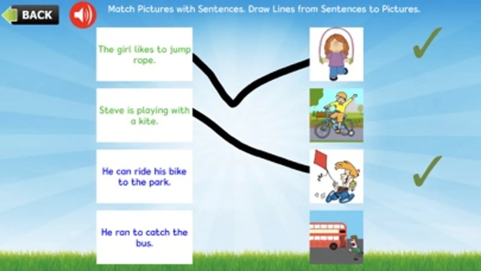 This app is a collection of simple sentences for early readers. The learner will be required to decode, or recognize by sight, the words in the sentence and indicate the meaning of the sentence.