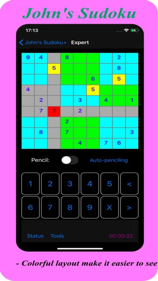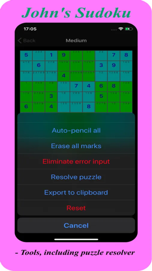 7. Auto-pencil (or auto-erase) all the cells with one tap.