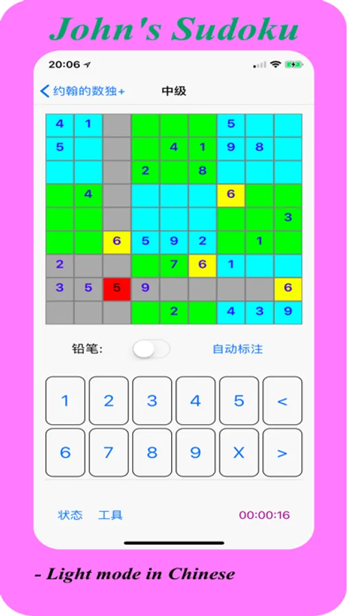 7. 一键自动标记(或擦除)所有单元格。8. 可以通过 ‘消除错误输入’ 返回到上个正确状态 。