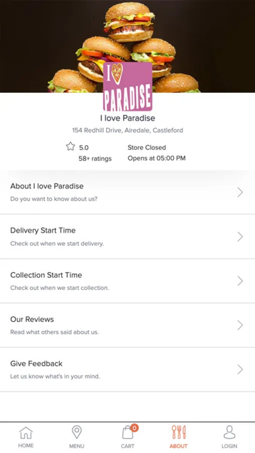 I Love Paradise is based at 154, Redhill Drive, Airedale, Castleford, WF103HQ. We aim to bring all of our customers the best value for money, services and food around, plus we are constantly aiming to improve our service. You can now order food online. Try our online website which contains all of our menus. We offer deliveries to all surrounding areas in Castleford. We offer all our customers the best service and the best food. You can now order your favourite Pizzas, Kebabs, Burgers, and much more online and get fast home delivery here at I Love Paradise. We are constantly improving our service and quality to give our customers a better experience; that is why we are now proud to offer this fantastic online ordering website. You can even pay online and get your favourite Food delivered to your home.