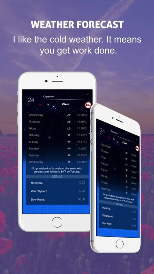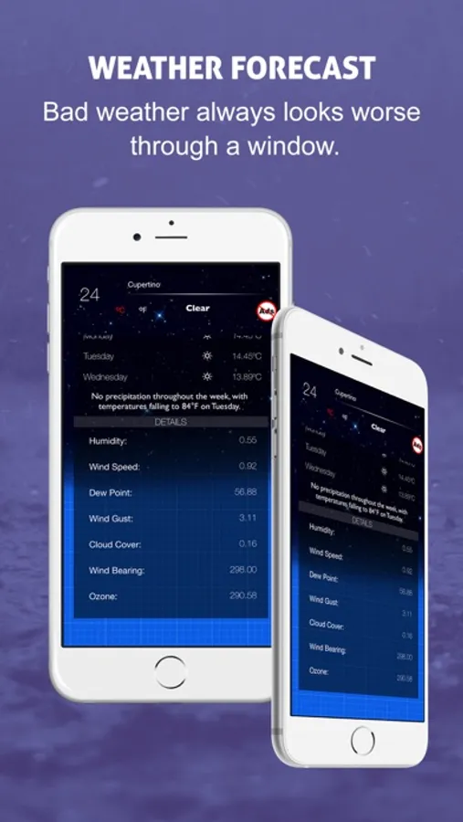 - More information: humidity, precipitation probability, visibility, wind speed, sensible temperature, etc.
