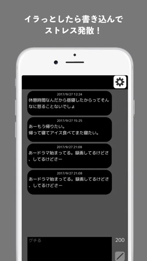 「愚痴フリー」は、日頃から溜まっている不平不満を書き込み、一気に浄化することで気持ちをスッキリさせるアプリです。