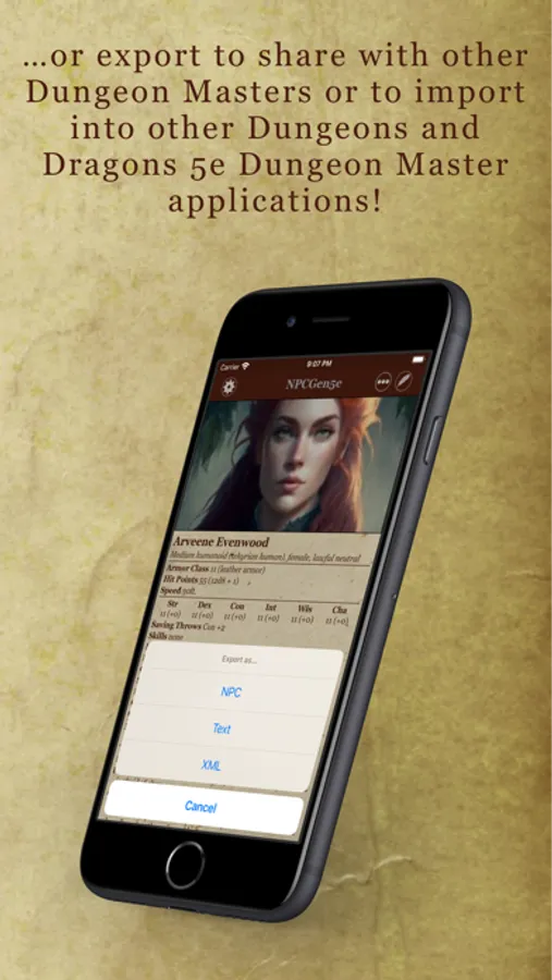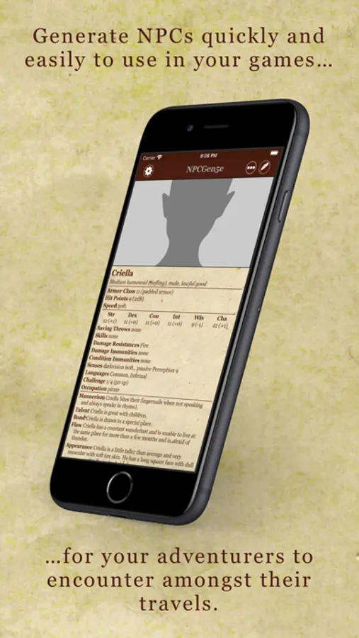 • Save generated NPCs to quickly view them when you need.