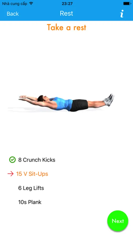 - Ability to pause the workout, and skip to the next or the previous exercise