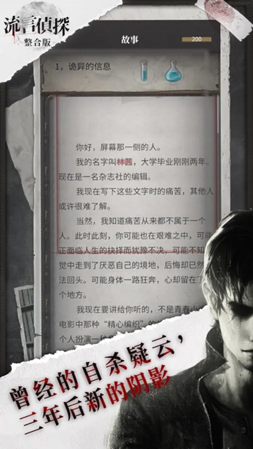 深刻复杂的故事。专门为游戏原创的30w字长篇侦探小说,传统连续杀人事件推理故事。结合十余位主要角色的人生故事刻画。