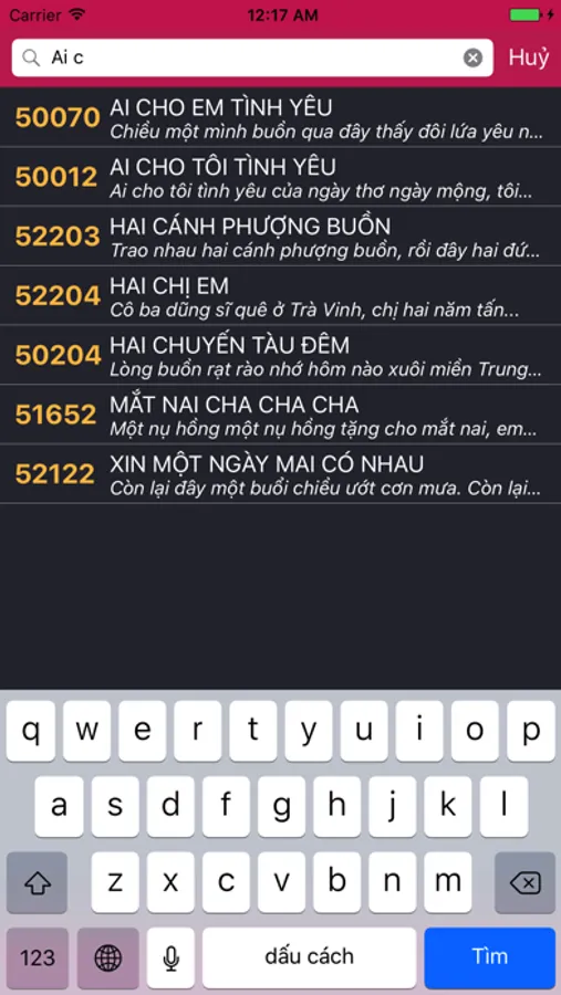 - Ứng dụng tra cứu nhanh mã số bài hát của các máy Karaoke Arirang 5 số