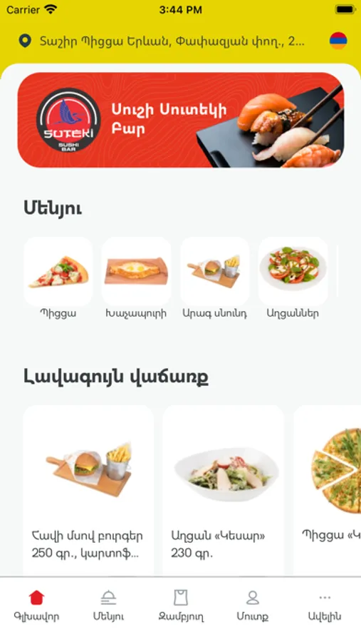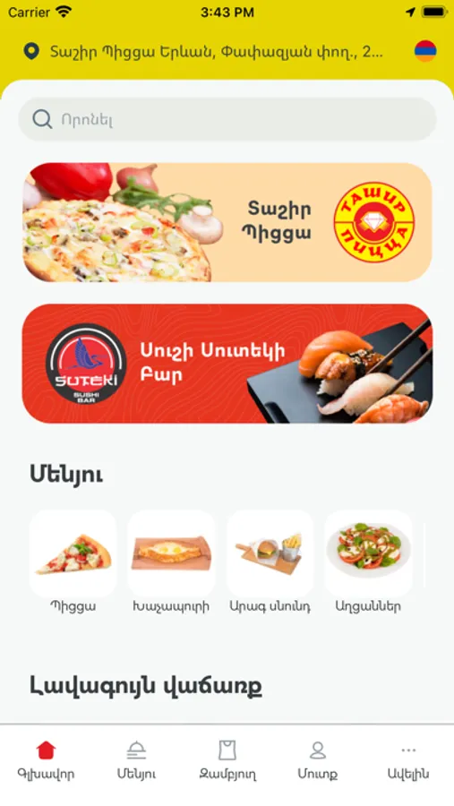 Here is the mobile application of “Pizza Tashir” pizzerias, with which you can make orders with delivery.