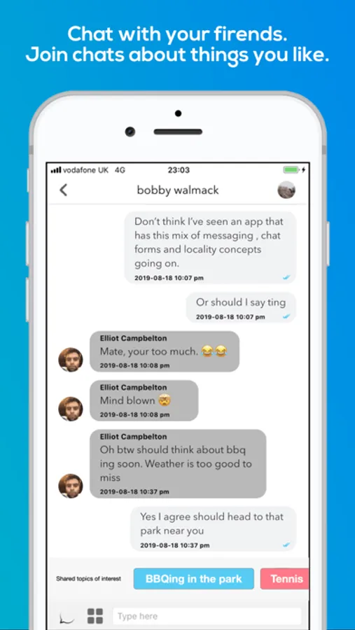 Ch@ is the messaging app that lets you talk to your friends and the community around you.