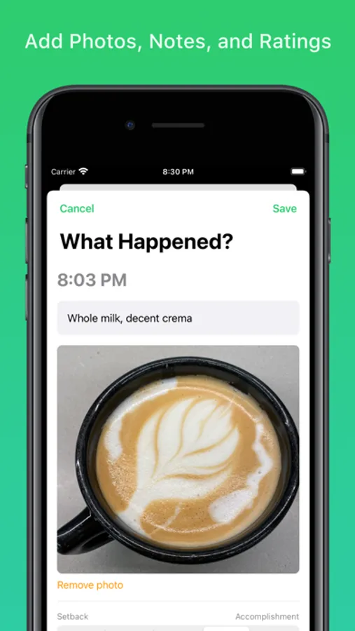 - Rating: Add a score to your logs to allow for setbacks, accomplishments, and more control over how a log impacts your goal.