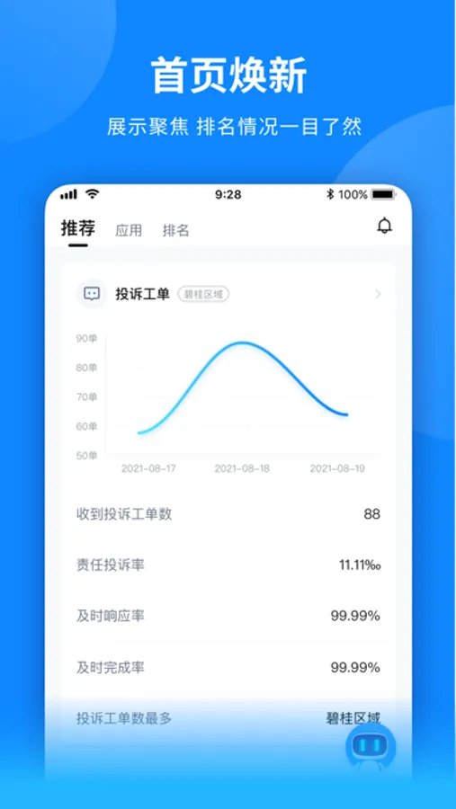 凤凰芯是一款服务于物业区域/项目管理团队的智能助手应用,辅助管理团队决策,帮助降低沟通成本,提升办公效率,加强业务管控。