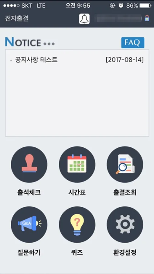 - 출결 기능 : 강의 시간에 모바일 단말기로 출결