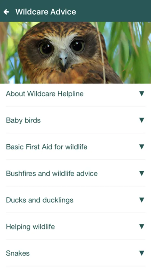 Within the app you will find information about what to do if you find native animals including birds, snakes and mammals. You will also find links and phone numbers to assist in dealing with cane toads, stranded whales and dolphins, and becoming a volunteer.